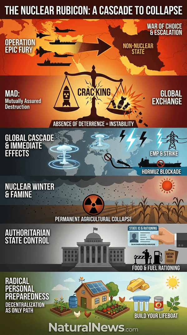 This is the dystopia the globalists have always wanted: a controlled, scarcity-driven society where every calorie and watt of power is doled out by the state. The ‘sick care’ medical industrial complex, which I have long exposed as a corrupt profiteer from human suffering, will be powerless against radiation sickness and pandemics of diseases like salmonella, dysentery, and typhoid that will spread rapidly among survivors lacking clean water [24]. The same institutions that lied about vaccine safety and suppressed natural cures will be tasked with ‘managing’ the crisis, guaranteeing further death through incompetence and malice. Your liberty, already under siege, will be extinguished completely under the boot of ’emergency’ authority.